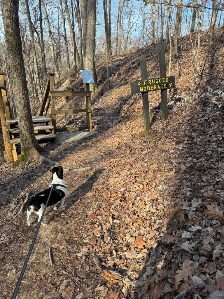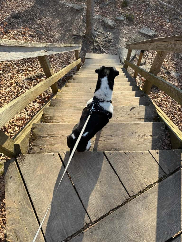Jocco and I ventured to Clifty Falls State Park in southern Indiana—a destination known for its rugged terrain, cascading waterfalls, and … a serious number of stairs. Neither of us quite knew what we were getting into (I only knew it was dog-friendly), but this brave boy tackled every hill, step, and overlook like a champ.