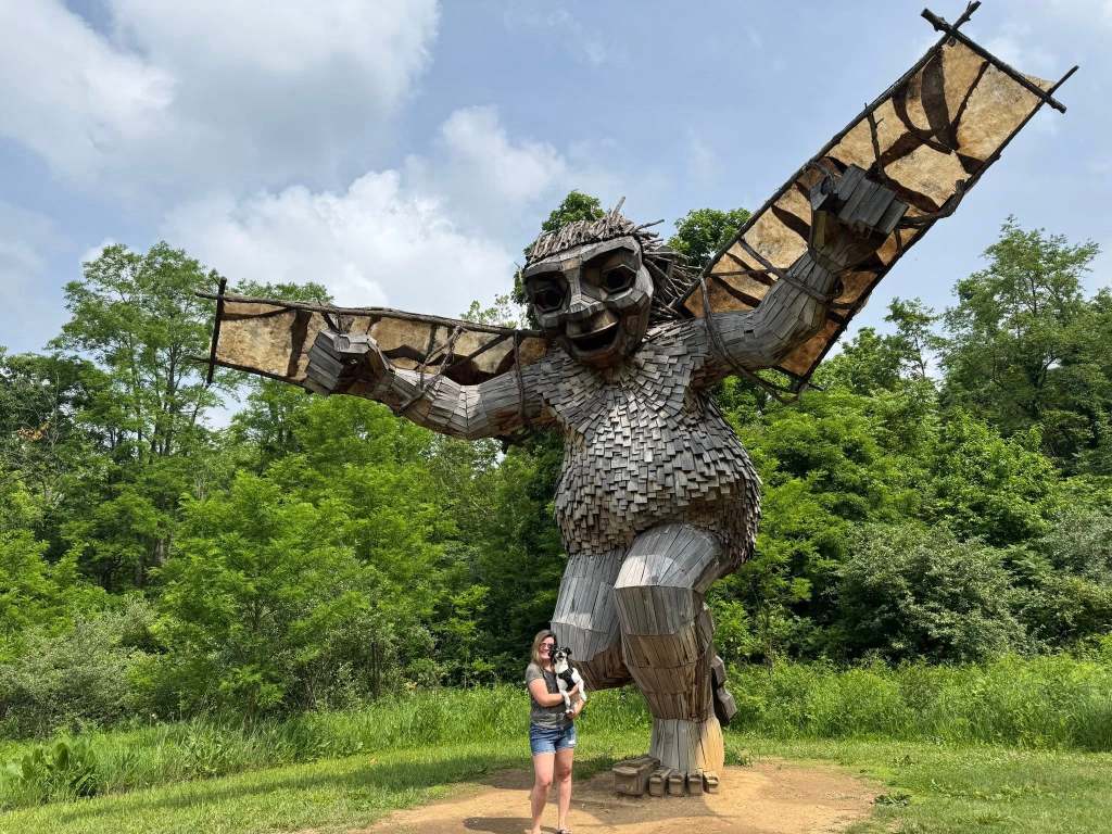 The closest entrance to the third troll is at the Vandalia Welcome Centerānot the Homestead location where we had started before. (Both sites are still accessible with your day pass.) If youāre short on time or traveling with senior dogs or small kids, I highly recommend driving from one location to the other to see the trolls.